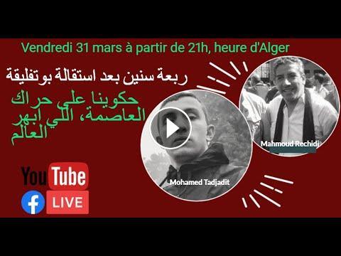 Nous aurons comme invités, le poète du Hirak et militant Mohamed Tadjadit et l'ancien secrétaire général du PST-suspendu, lui aussi poète et artiste notamment lorsqu'elle a écrit plusieurs chansons du groupe engagé Debza. Mohamed et Mahmoud sont deux enfants d'El Assima.