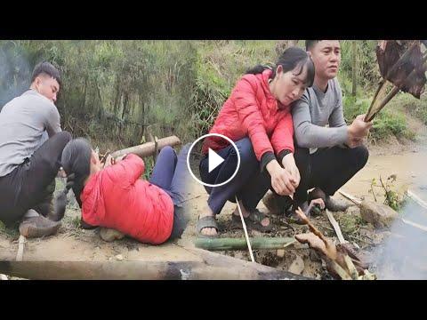 Worried about Nam, Hang went with Nam to pick fruit to sell. Nam was very happy.